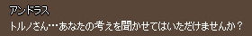 メインストリームG9のエンディングでアンドラスが巨乳エルフである事実がチラリと分かります。 そんでこのイベントはソレを裏付けるイベントになってます。 今回はそんな巨乳エルフ・アンドラスの過去RP! ヨウジョラスktkr。 (ょぅι゛ょ+アンドラスの造語) ょぅι゛ょハァハァ(*゚∀゚)=3 って人はコチラへどうぞ。 耳が長いというだけでこの仕打ち。 …なにかデジャブが… エルフっていうのはことごとく嫌われ者なんですね。 クソッ、なんて時代だ! で、追い詰められたょぅι゛ょはダンジョンの中に逃げ込むことに。 INT300、魔法は全て数字ランクとょぅι゛ょに似つかわしくない強さ。 しかしボス部屋につくとそこには! たーべーちゃーうーぞー( ゚Д゚) ょぅι゛ょの運命やいかに!? ・・・ で、RPが終わるとアンドラスから質問を受けます。 ここの回答で報酬が変わります。 「過去があるからこそ現在もある」にすると、 ステータスが高めに設定されていますが、改造できない為かなり微妙な武器に… ちなみに「今を大切にして欲しい」にするとタルティーンツーハンドソードをもらえます。 コチラは巻き込み範囲が相当広く弓と比べるとかなり優遇されてるっぽいです。 本当に世知辛い!! 過去にさようなら。 2009.03.24 Tue 01:29:11 エルフの頼み と マスタータイトルG9追加シナリオ「アンドラスの過去」からエルフの頼みをちょこちょこっと進めてみました(゚∀゚)