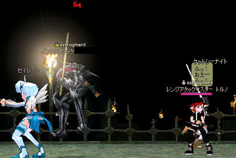 そんな中ルンダセイレーンハードダンジョンは熾烈を極めているのであった。 (前編) そんなこんなで! ボスまでたどり着きましたー(ノ´∀`)ノ 猫ではなく右の変な仮面をしてるほうがボスです。 で、このセイレーンさんスマッシュのクリティカルが出ると仮面が剥がれるってことで、 ウチのギルドマスターにがんばってもらう事に! とはいえハードダンジョンのセイレーンは保護が恐ろしいほど高く、仮面を剥ぐためには ペッカでクリティカルを出せるクリティカル率以上のクリティカル率が必要となるらしいです(;゚Д゚) ちなみに仮面がない状態ではパッシブディフェンスが発動せず、サンダーとテレポートも使わなくなります。 …ということで、いつの間にか攻撃しているつもりが攻撃されてるわけですが。 結局スマクリは出せぬまま終了してしまいました(´・ω・`) それにしてもこの格好はどうみてもハイレグにしか見えない。 痴女なの? PR TrackbacksTRACKBACK URL : CommentsComment Form |
