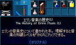 2つクエストが。 「音楽についての研究」はランクDにすれば終了。 「美しいハーモニー、合奏」は楽器演奏と音楽知識がランクC以上になれば終了になります。 で、「音楽についての研究」の報酬がコチラ。 …ん? 音楽知識のレベルをFからEに…? (音楽知識のランクは現在A) 意味ねぇ。 売ろうとしても「売れないアイテムです」という非情な警告が出るので、仕方がない、もう一度読んでやろうと。 アレッ!? …自分、ランクAですよね? ( ゚Д゚) |