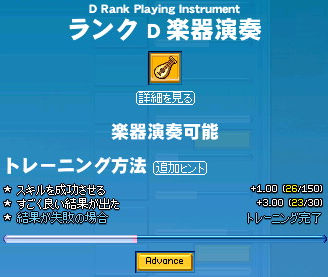 間延び。オンラインゲーム Mabinogi(マビノギ)のプレイ日記とか。PAGE | 9 10 11 12 13 14 15 16 17 18 19 | ADMIN | WRITE 2009.09.30 Wed 01:28:58 楽器演奏をかじってみてランクF→Cなんとなく楽器演奏をあげてみることに。