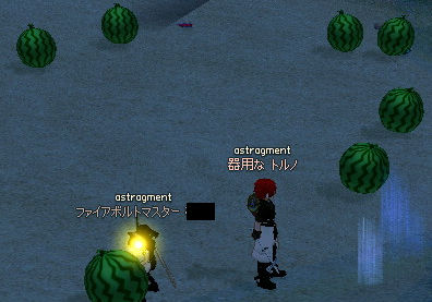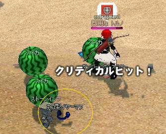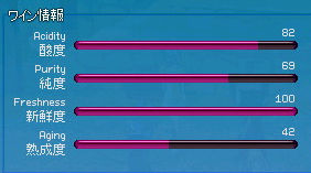 決まった時間にミニゲームをやらないといけないという面倒くささがありますが、ソレを乗り越えれば経験値的には非常に美味しいのでやってみてはいかがでしょうか。 まぁ面倒くさいですが。 酸度 : 樽交換(ミニゲーム)で低下 純度 : 樽交換(ミニゲーム)で低下 新鮮度 : 24時間以内に樽交換(ミニゲーム)をやらないと低下 成熟度 : 1日14増加 (詳しくはwikiでどうぞ) ■平凡評価を取る方法(ミニゲームは2回) 1日目 : 醸造開始 2日目 : ワイン排泄量を全開でミニゲーム(酸度-0、純度-20あたりを目指す) 3日目 : ワイン排泄量8当たりでミニゲーム(酸度-18、純度-5~10くらい) 4日目 : 醸造終了 これで上の画像みたいな状態に。 これで平凡評価。 もう一日醸造して(60、60、100、56)くらいにすると8万くらい経験値もらえます。 ね?簡単でしょ? 平凡評価だとワインクエストスクロールが2枚貰えます。 これがまた簡単かつ美味しいといういたせりつくせりなワイン醸造!(ノ´∀`)ノ (2種類あるのでソレはまた後述) ちなみに樽交換を行う時間ですが、ログアウトする時間とかにすると割と忘れずにできると思います。 ペンカストの後頭部を何度殴りつけようと思ったか知れない。 2009.09.07 Mon 01:08:37 夏イベントその3、スイカ割り2009夏の最終イベント、スイカ割り2009!