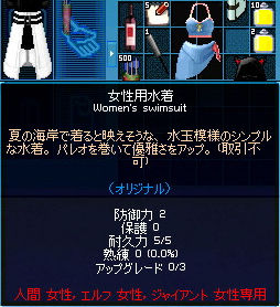 まぁ割っても赤い内容物が飛び出るような素敵なものではないですが。 割ると… 敵が。 もう気分は桃太郎のおじいさんです。 どうでもいい話ですけど、モモを真っ二つに切ったら桃太郎も真っ二つですよね。 どうでもいいんですけど。 敵のほかにもゴミやら本やら水着やらが。 水着は毎年毎年デザインが変わってコレクトしてる方もいらっしゃるみたいですが、インベントリに余裕のない私には不要なものであった… (そもそも女性用を拾っても取引不可だし) !! またお前か!! 2009.09.05 Sat 01:35:35 祭りの後のアルビ上級ハードモード1人用昨日の花火の後にアルビ上級ハードモード1人用に行くことに。