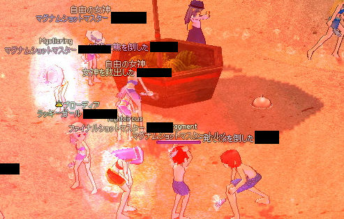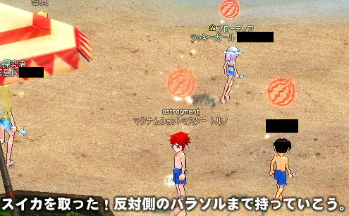 イベントが始まったばかりの頃に行ったので人がいっぱいです。 (何日か経つとドンドン人が減っていくんですけどね…) 今回はブルーチームで参加。 …なにやら位置的な関係でブルーチームのほうが参加者が多くなり、有利に働くみたいな感じ。 スイカを運ぶと1点。で、総合点を競います。 ちなみにスイカ調達場は妨害の嵐です… 青も赤も入り乱れて凍る凍る。 エルフの脚の速さを生かして運びまくった結果。 一番点数取ってましたヽ(゚∀゚)ノ ちなみに勝者は100%賞品が貰え、敗者は50%で賞品が。 3回参加した結果。 1.ブーツ 2.ブーツ 3.ブーツ クソァ!! |