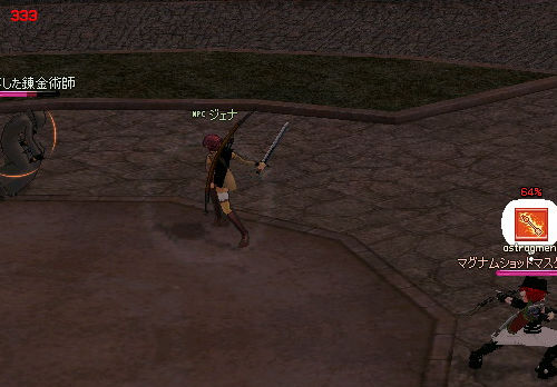 美味しい…(*゚Д゚) しかしハードの報酬経験値は225,000。 …格差社会… 影差す都市同様広場に向かって行軍です。 すると途中で… ジェナさん登場。 ムービーの後に一度話しかけると戦闘に参加してくれます。 前回鬼のような強さを見せ付けたジェナさんですが、さて今回は…! ハイ、今回もジェナ無双でした。 コチラがやることはジェナさんのサポート。 ほぼ脇役です。 そして広場に着くとボス戦なんですが。 そのとき流れるムービーで… 完全に脇役です。 ボスもジェナさんに完全お任せ。 近接+遠距離で相性はいいはずですが…ジェナ圧倒的すぎる… 影ミッションが終わるとこれがもらえて。 へレッドに渡せば錬金術「金属変換」を習得できます。 錬金術はステータスが上がらないのが多いのですが、これはDex、スタミナ、マナが上昇します。 んでもって謎の鉱石を鉄やらなにやらに変換できる素敵スキルです。 余裕が出たら鉱物採取と一緒に上げてみたいですねー(ノ゚∀゚)ノ 2009.08.18 Tue 00:52:36 ケルピー弱すぎワロタ…2009.08.17 Mon 00:43:26 久々ペッカ下級!\ワイトです、顔が怖いと言われます/