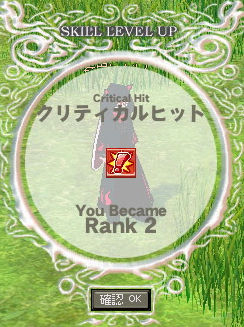 リュートとかどうでもいいんですけどね。 前は当たりが何も出なかったんですが! 今回は正宗が!!(ノシ゚∀゚)ノシ あいにく自分はナオサポートしか入れていないので相方に売って貰って、2人で山分けです。 その他にも。 探索経験値を上げてたら不意に出たナオ服とか。 ナオ服の中では流通量が多いのであまり高くは売れないんですよね…(´・ω・`) ネイドさんから頂いたけしからんミニスカ服。 トルディジャグドミニスカートって言う服で構えるとパンツです。 全部相方に渡して売ってもらいました(゚∀゚) あれ、何この財布を握られている感… . \ひゃっほーう!/ 毎月この金額でやりくりしてね^^ って感じに。 お小遣い小切手で渡すって… 奥様は小切手だろうとぞんざいに扱います…ヒィー(((゚Д゚)))ガタガタ 2009.06.18 Thu 00:59:01 クリティカルヒット ランク3→2えるふったらさいきょうね!!! (この後道に迷ったエルフはスタッフが美味しく送り届けました) こういうときじゃないとエルフって揃わないんですよね…(;´∀`) さてさてクリティカルヒットを上げるためのトレーニングですが。 この男、裸である。 放置被クリトレーニングです。 1人なので公然わいせつ罪じゃないですよね(・∀・)・・・ やり方は簡単。 裸で「死を超越した」タイトルをつけてロンガ遺跡の「老いたミミック」1匹に長時間かじられるだけ。 高ランククリティカルヒットはトレーニングの埋まりがスローペースでヤキモキしますが!! 無事ランク2に!(ノ゚Д゚)ノ …ランク1に出来るのか凄い微妙な感じになってきました。(時間的に) |