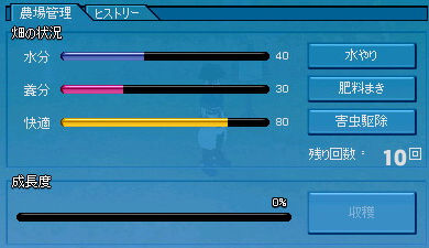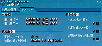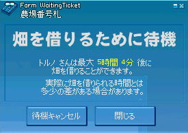 無事番号札を貰うことが…ご、5時間(;゚Д゚)!? 状況によっては早まることもあるようですが、5時間て… 早朝6時とか20時、0時あたりが借りられ安いそうです。 (+5時間) 畑を借りられたらナニを植えるか選択します!(ノシ゚∀゚)ノシ せっかくなので最低売り上げ価格期待値の高いイチゴを選択してみました。 まぁ罠なんですけどね。 というのもイチゴの成長率は5つの作物の中でも最も悪く、畑に付きっ切りになってしまうため、 時間がないと成長させきれない場合が。 そこら辺は自分のプレイ時間と相談ですかね(´∀`) さあ畑仕事でいい汗かきましょう!(PCの前で) 2009.06.20 Sat 01:27:31 見上げる空2009.06.19 Fri 01:23:12 お金の亡者モード前に行ったアルビ上級1人用にまた行ってきまして…(´ω`)