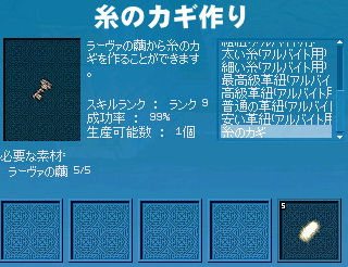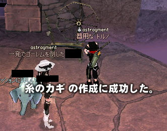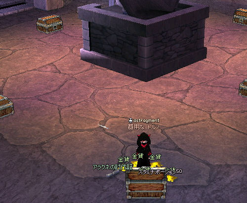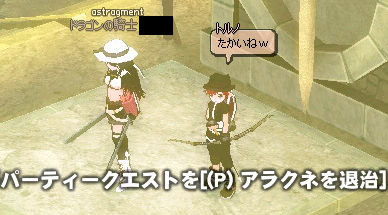 という相方の金の亡者モードに付き合い、無制限通行証を使いアルビ上級1人用へ。 報酬で「ダスティンシルバーナイトヘルム」か「正宗」が出れば高く売れるのでそれ狙いです。 間違って買ってきたパーティークエスト、アラクネ退治。 もともと1人用のダンジョンなのでパーティークエストは存在しません…(ノ∀`) (↑はハードダンジョン用のPTクエスト) 相変わらずアルビ上級の敵は硬い+HP多い+保護高いで鬱陶しいです(´Д`) で、アルビ上1人用のみに出てくるラーヴァさん。 後に「鍵」を作るのに必要な「ラーヴァの繭」を落とします。 宝箱を開けるために必要な鍵ということで、相方とラーヴァのドロップ権奪い合い… 汚い、流石人間汚い。 (金が絡むと) で、無事ボス部屋につくと… . \ムーミーン/ . \ハーイ/ あれ、どこかでお会いしませんでしたっけ…? 思い出した!いつぞやのクッキー小屋の人! なんかイベントに借り出されて大変ですね…(;´∀`) アラクネを倒すと、ボス部屋にある糸車で「糸のカギ」を製作可能です。 (多分倒さなくても可能?) 材料は先ほどのラーヴァの繭。 アルビ上級1人用は通常ダンジョンと異なり、宝箱が参加人数分置いてあるわけではなく、 必ず8個の宝箱が置いてあります。 カギを作る数が多いほどあけることの出来る宝箱が増えるってわけですねー(ノ゚∀゚)ノ ※ちなみにラーヴァの繭のままだと持ち帰ることが出来るので、次回に持ち越しということも可能です。 |