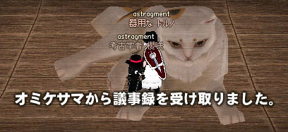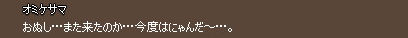 一時はどうなることかと… メンテ長かったね。 日本独自のマップということで前々からネコ好きの期待を一身に受けていましたが果たして! 届いたクエストをこなして、シェナンのとこからレッツゴー死の海!! 凄い勢いで船が揺れてます。 グラグラ(((´Д`))) !? あまりに揺れすぎて目が8つに!! 危うく妖怪の百目になっちゃいそうなところでしたが… おいでませネコ島! いたるところに野良猫が。 (=゚ω゚=)ニャーン しかしクロネコとは… ネコ島の真ん中辺りにある公演場。 座るモーションがないので無理矢理切り株に座ってみた。 しかし辛そうな体勢… ネコ島実装時にはマビノギ4周年イベントでお祭りをやってまして。 みんなでハンマー叩き(ノシ゚∀゚)ノシ 得点が高ければ高いほどいいのですが果たしてー!? ですよねー。 2009.06.11 Thu 01:43:11 ペアでアルビ上級1人用!お金欲しいお金!(ノシ゚Д゚)ノシ