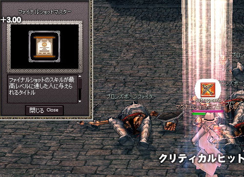 間延び。オンラインゲーム Mabinogi(マビノギ)のプレイ日記とか。PAGE | 1 2 3 4 5 6 7 8 | ADMIN | WRITE 2010.03.03 Wed 00:54:58 新年イベントとかあったでしょう新年早々フクロウからクエストが。 新年イベントという名の釣りイベントでした。 ま た 釣 り か ! このイベントでエンチャント付きのお守りがもらえるってことで、手動で釣りまくり。 おせち作って、オミケサマのところにいくのですが… . /⌒ヽ . / ´_ゝ`)すいません、ちょっと通りますよ・・・ . | / . | /| | . // | | . U .U オミケサマ?ただの猫でしょ?(スタスタスタ) と、スルーしてもお守りは貰えました。 オミケサマ太っ腹!(大きさ的な意味で) どっしりとした てんびん座の お守りを頂きました。 「どっしりとした」は近接向きのESですね… Str 15増加 Luck 10増加 どちらかといえば、Dex 15増加、Luck 10増加の「軽い」ES付きのお守りが欲しかったな… といってたらギルドメンバーがくれました。 べ、別にアンタの好意なんて受けなくてもよかったんだからね!! これでおあいこなんだから!!(´∀`*)ポッ *** ちなみに、サブでもやってみた。 . \無視すんにゃよ/ PR 2010.03.02 Tue 00:38:51 精霊武器作成2010.03.01 Mon 00:41:28 ファイナルショットマスター2010.02.27 Sat 00:14:26 バーサーク カリバーン ビペンニス2010.02.26 Fri 00:59:06 いまさらレネスプレイ2008年夏に実装された卵を守るレネスプレイですが、未だにクリアできていませんでした。