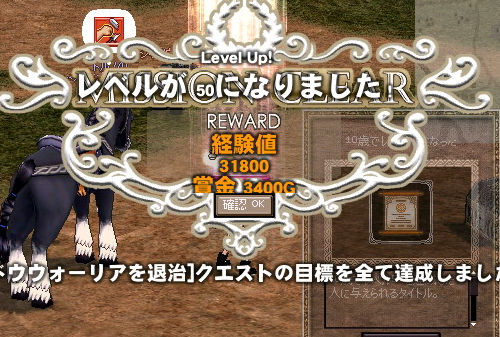 彼らのやり方?ナニソレ。 「シャドウウォーリアを退治」は敵少なくてやわらかいわ、多タゲにならないわで楽に周回できるのが(・∀・)イイ!! (1週8~10分くらいで回れます) てことでぐーるぐる回って無事レベル50に(ノシ゚Д゚)ノシ おや?うっすらと何かタイトルが… 元祖廃人の称号を手に入れた!! 今は経験値テーブルが見直されて必要経験値がガクッと減ってますし、影ミッションも実装されてるので敷居は大分下がってますね。 レベル50までに必要な経験値 : 2,958,400 シャドウウォーリアを退治(上級)取得経験値 : 31,800 …約85~90週って感じですかね。 ついでに。 クリティカルランク3に!(ノ゚∀゚)ノ 2009.05.10 Sun 01:28:14 騎馬戦を考えてみる4周年と共に大型アップデートが実装され、新しい町タラができました。