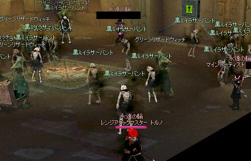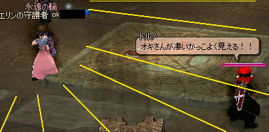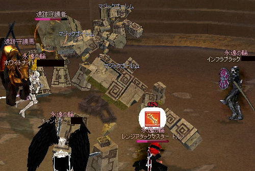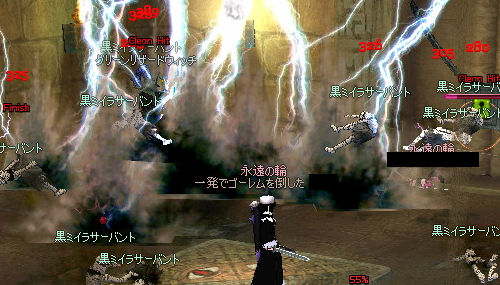 やってきました守護者の遺跡! 神秘の矢を落とすことで入場できる上級ダンジョンです(ノ゚∀゚)ノ とにかくMOBが多い & 硬い! とても各個撃破では殲滅が追いつかないのですが。 ここでサンダーさん登場!! 広範囲に攻撃できる中級魔法はこういうところで物凄い魅力的に映りますね… エンチャ師でありサンダー使いな彼は、ギルドでも引っ張りダコの人気者です。 … 嫉妬しちゃいますね。 んでボスが通常ロンガダンジョンと同じく守護者さん。 神秘の矢しか通じないので、回りにゴーレムとやり合ってもらって自分はボス一点集中! ココのボスは「シュロ」ESのロングボウを落とすことで有名です。 ■シュロ(接尾) : 遠隔武器のみ 修理費12%増加 レンジアタックA以上の場合、最大ダメージ4増加 レンジアタック7以上の場合、最小ダメージ6増加 レンジアタック4以上の場合、最大ダメージ8増加 最大生命力10減少 最大スタミナ10減少 最大ダメージ+12、最小ダメージ+6と破格の上昇値です!( ゚Д゚)ウヒョー まぁ、出ないんですけどね(ノ∀`) 2009.03.15 Sun 01:45:47 ドッペルゲンガー |