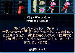 間延び。オンラインゲーム Mabinogi(マビノギ)のプレイ日記とか。PAGE | 34 35 36 37 38 39 40 41 42 43 44 | ADMIN | WRITE 2009.03.20 Fri 01:17:54 スマッシュE→A 殴り倒す2009.03.19 Thu 02:32:06 お返しにはクッキーを3/5~3/19までホワイトデーイベントでしたね。