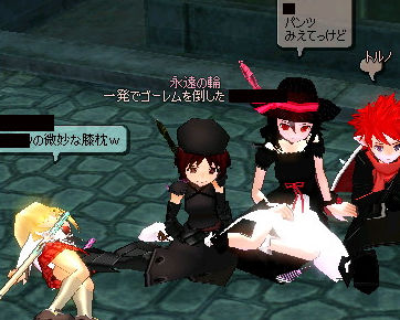 ぱんつ。はこれからぱんつに特化していきます。ぱんつ。だけに。 ギルドメンバー4人でラビ上級に行ってきましたよ。 ラビ上級は爆弾(スケルトンスクィッド)と3層以降は弓が効かないメタルスケルトンがいるので、個人的には鬼門です…(ノ∀`) そこはサンダーの出番です!( ゚д゚)ドカーン!! なんか弓だけでは生きていけないなぁ…と思いますね。 ついでにレベルアップ(σ・∀・)σ で、ココのボスが。 2人はプリキュアです。 もうお分かりの方もいらっしゃると思いますが…今回のターゲットはこの方々。 スマッシュで吹っ飛ばしてぱんつを拝見!しようと思ったのですが、脚で鉄壁ガード。 しかし私は諦めない。 カメラワークに失敗…(ノ∀`) !!! 黄色!!! 2009.02.25 Wed 11:53:18 火山トカゲ産 険しい帽子先日から火山トカゲさんのところに通いつめている理由は、「険しい」ESがついた帽子です。