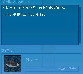 そしてペッカ通常ダンジョンに行ったこともないのに、下級に行ってきました(ノ゚Д゚)ノ (難易度は 通常<下級) ペッカの敵は近接、弓、魔法とそれぞれ効かないMOBが存在するので… 物凄い歯ごたえです! もう皆必死でヒィヒィ言いながらMOBをなぎ倒していきます。 近接2、弓3、魔法2 とPTのバランスがよかったのが幸いしましたね…(´∀`) 中ボスのでっかい蛾。 反応が後攻なので、ハッキリいって道中のMOBのほうがよっぽど厄介です。 そして道中最高の難関、ゴーストさん。 コイツらに何度中級魔法で撃ち殺されたのか知れない。 通路にペットを置いて、一匹ずつミルでハメ殺すしかないという状況…しかも超時間かかる(;´Д`) で、そんな難関達を潜り抜けやっと …の前にネコに全滅させられる一歩手前。 ネコ強いよネコ(゚皿゚)フギャー!! バンシーにダメージを与えるにはこのゴーストソードが必要不可欠です。 しかしながら2~3本しか持ってなかったので、即破壊。 ということでエルフのミラージュミサイルで削ってみようと試みましたが… あえなく決壊 ( ゚д゚)゚д゚)゚д゚)゚д゚)゚д゚)ポカーン… その後取り巻きのゴーストからゴーストソードを作る→バンシーに攻撃する→全部壊れる→取り巻きの(以下略 を繰り返し… 16時からダンジョンに入り、24時に無事撃破!! 正直疲れました…(´q`)眠い… 報酬で眠気が吹っ飛びました。 2009.02.20 Fri 00:27:10 バレンタインデーイベント終了のお知らせ |