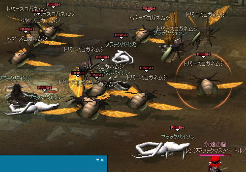 経験値が何気に美味しいんだよねメインクエスト(・ω・) しかし相変わらずスイッチ叩いて回るだけのミッションです… 代わり映えしないよね、メインクエのミッション(;´Д`) で、今回からMOBにシャドウアルケミスとが追加。 アルケミストと銘打ってますが、ランサーとか他のMOBより近接攻撃が痛いです…なんじゃそりゃ(゚Д゚) またアルケミを真っ先にアクティブすると、その他は反応しない。らしいです(wiki情報) オレはアルケミと他のMOBと2タゲを貰って非常に大変な状況に… スイッチを全て押して、敵を殲滅させるとボス戦です。 まず集団戦。 レイモアが死ぬと失敗になるので速攻で片付けちゃいましょう(`・ω・´)=3 集団戦が終わったら、再び集団戦。 なんかイケメン(レイモア)が防御壁をおいていってくれます。 この防御壁が優秀で、弓師にはとてもありがたいカベになってくれます!d(゚∀゚)b 2回目の集団戦が終わるといよいよボス戦! テフラさん登場です。 ハハハ!テフラさんも防御壁の前じゃ形無しっすね! とか余裕かましてたら… 援軍を呼びまくるテフラさん。 このあと防御壁を潰され、白ゴーレム2匹とテフラから波状攻撃を喰らうというトンデモナイカオス状態に。 SS取る余裕がないくらい(ノ∀`) テフラはとにかく防御が高く、なおかつHPが高いというまさしく「かっちかちやぞ!」。 なんでも毒が効くらしいので、毒持っていったほうがいいです。 長期戦になるとカオスになるので! 2009.02.01 Sun 01:33:03 影世界の錬金術実験G9 影世界の錬金術実験クエスト!