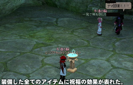 間延び。オンラインゲーム Mabinogi(マビノギ)のプレイ日記とか。PAGE | 43 44 45 46 47 48 49 50 51 52 53 | ADMIN | WRITE 2009.01.31 Sat 11:24:31 野獣化スキルを考えるホントはタイトルのところに使おうと思ってたけど、設定の仕方が分からない/(^o^)\ しょうがないのでちょっと編集してプロフ画像に。 *** 変身こと野獣化スキルがランク5に(ノ゚∀゚)ノ 野獣化スキルの要である「ヒューリーオブコンヌース」は一旦停止。 今後は何を上げていこうかな…と考えて、ちょっと野獣化スキルについて解説なんぞを。 ■ステータスアップ系 要スキル。 ランクアップによって、LIFE、スタミナ、STR、最大ダメージ、最小ダメージが上昇。 …と、ランクアップによってのステ上昇が弓師にとってはあんまり恩恵を受けることがない。 あとランク1によってファルコンセイジに容姿が変わりますが、 人(環境)によっては重さを感じてしまう(自分にも周りにも)というバグが。 自分だけならまだしも周りに影響を与えてしまうのは…(;´Д`) ・アーマーオブコンヌース ランクアップによって、will、防御、保護が上昇。 クリティカルの上昇、マナシールドによるダメージ減少が見込める。 ・マインドオブコンヌース ランクアップによって、マナ、INTが上昇。 ランクFでマナ上昇値が400と、他の種族より上昇値が高い。 マナシールドの信頼値上昇。 ・シャープネスオブコンヌース ランクアップによってDEX、クリティカル、バランスが上昇。 弓師にとっては「ヒューリーオブコンヌース」より弓ダメージ上昇が大きい。 と、ステータスアップ系での重要性はシャープネス>マインド>アーマーと判断(自分の中では) シャープネスとマインドは状況によりけりですが(´∀`) それでステータスアップ系を上げるのかと言われれば、そんなことはなく。 変身時に使える、必殺スキル! ランク1になれば最小230%~最大600%と、ばらつきはあるもののマグナムショットの500%を超えます。 (しかも範囲攻撃) ということで、今後はエルブンマジックミサイルを上げていこうかと思います。 ヤッパリ漢なら、ロマンにかけるべきですよね(゚∀゚)b PR 2009.01.30 Fri 00:51:02 4人 de キアハード下級!という報告のクエストがきました!(ノシ゚∀゚)ノシ ハードダンジョンは累積LV が250以上ないと入れない上級ダンジョンで、 一般のものより難易度が高く設定されています。 ということでさっそくギルドメンバーといってみました! なんか通常のダンジョンに比べて苔がいたるところに生えてて、古臭いイメージをかもし出してます。 (・□・)<カモスゾー 出てくる敵に変化はないものの、タフさが赤丸急上昇。 ラットマンに関していえば通常LP260→1550(wiki情報)に。 倍ってレベルじゃねーぞ!! (防御力も上がってるので、余計にタフい) その分経験値も赤丸急上昇で(゚∀゚)ウマーイ!! でもまぁタフになっただけでAI事態は変わらないので、落ち着いて対処すれば十分クリアは可能! 時間はかかるけどね(ノ∀`) おまけ ナマ? 2009.01.29 Thu 01:21:15 私にも出来る!乳搾り※ご注意
