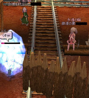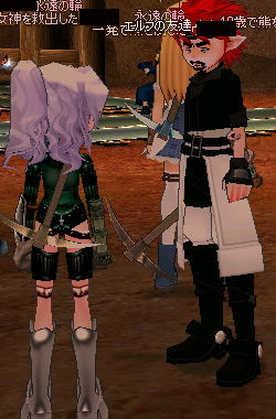 錬金術を使って何か出来ないか?と試行錯誤した結果、採掘+錬金術の複合の形に。 今回のイベントはバリDでエルフ支持チーム、ジャイ支持チームに分かれて掘った鉱石量を競います。 ■ルール ・使うツルハシは未改造の物であること ・使用して良いスキルは以下のスキルのみ (ウインドブラスト、ウォーターキャノン、防護壁 : 結晶は別途配布) ・アイテムは配布したもののみ使用可 (ライフポーション30×5、アイスマイン×2) 参加人数は16人を超えてます…(;゚Д゚)多すぎる… まず結晶、アイテムが配布されます。 で、バリダンジョンの入場場所からよーいドン!でスタート。 団子状態!! で、このイベントにおける使用感ですが。 ウィンドブラスト : 準備時間が短く、掘り出した相手を妨害するのに最適(準備時間1.2秒) ウォーターキャノン : 使えない子(準備時間2.5秒) アイスマイン : 通路に置いたり、鉱石発掘場所に置いたりとその用途は多い、優秀 防御壁 : 人がいると使えない、使っても隙間から逃げられる…と微妙に使い難い エルフの俊足を生かして手前にアイスマインを置き、奥の鉱石を掘る図。 いくらエルフの脚が早いからといっても、掘ってりゃ追いつき追い越され… 見事に相手のアイスマイン地獄に嵌る(ノ∀`) 防御壁の逃げ道にアイスマインを設置するとか…!! 1階層ずつ、計3回戦行われ、エルフチームは2勝1敗で見事勝ち越しヽ(゚∀゚)メ(゚∀゚)メ(゚∀゚)ノ ちなみに試合の合間には、 ちょっと席を空けたギルドメンバーを皆で取り囲んだり… ギルドメンバーのエロ装備に目が釘付けになったり(´-`).。oO(コレはいいケツ装備・・・) そのあとはこの人数で、BOSS戦に! オーが戦士先生が非常に強くてですね… 錬金術かつるはしで倒そうぜ!といってたらあちこちでファイアーボールとかファイアーボールとかファイアーボールとかドカーン!ドカーン!!( ゚д゚)ドカーン!!!(前みえねぇよ) おまけ ミニスカでやるスキルじゃないよね。 2009.01.24 Sat 00:47:11 メトススケッチで探索レベル上げまだまだ続くよ探索レベル上げ!