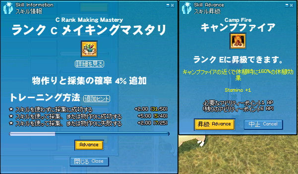 そういえば精錬ランクを上げていた理由ですが。 1.マグナムショットをランク1にしたい 2.スタミナを上げたい 3.精錬を上げないとメイキングマスタリを上げられない (精錬の失敗トレのためにメイキングマスタリを上げるわけにはいかない) 4.精錬を上げざるを得ない というわけで今度はスタミナ確保です。 やっぱりランク1上昇するごとにスタミナ+10の効果は大きいですね…(´∀`)スバラシイ 羊をもふもふするためにフィリアでの光景。 見事に井戸に引っかかって微動だにしません。 犬系のペットを使って羊を移動できるそうなのでソレを使って引っ掛けるわけですね。 誰もいないようなのでありがたく使わせてもらって… メイキングマスタリランクC→Bに…!…? アッー!? とまぁちょっと間違ったりしましたが、無事ランクAに。 キャンプファイアスキルも上げれば有用なので上げるのもありっちゃありですよね… スタミナも上がりますし。(+1) 今回のは完全に想定外ですけどね。 PR 2009.01.05 Mon 01:02:24 精錬ランク2→1いっくぜぇぇぇぇぇぇぇぇぇぇぇぇぇ!!!(ノ゚Д゚)ノ