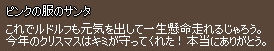 (ちなみに順番は関係ないらしいです) 今度はどんなおっちょこちょいをしたのかと言うと。 コイルダンジョンといえば厄介なスプライト系のモンスターがいるところじゃないですか… ■スプライト ヘビースタンダー(Lv2)、ナチュラルシールド(Lv2)、マナリフレクター(Lv1)を持つ。 つまり近接攻撃を弾き、遠距離攻撃を弾く。 ついでに数字ランクのボルトを持ち、策敵範囲も広い。 対処法は…まぁとにかくふっとばし攻撃(スマッシュ、マグナムショット)でごり押しで。 アイスボルトカウンターでも安定しそうですが…時間カカルンダヨネ。 ついでにレベル44に。 ちなみにこの服、サンタの手伝いを終えるまで脱げません。なんの呪い…? 最後まで行かずにキャンドル取ってクリスマスツリーへ。 次!ピンク! ピンクは「トナカイの金ベルを何者に盗まれたから取ってきて」とのこと。 敵から銅・銀・金のベルがドロップするのですが、金のドロップ率低い(ノД`) どうしたもんか…と悩んでいると「金重複してるからあげるよー(・ω・)ノシ」とのこと! (゚Д゚)イェァ! ルドルフってあのクリスマスソングの「真っ赤なお鼻のトナカイ」なんですよね。 いつも皆に笑われてて、しかもベルまで盗まれて…(´;ω;`)ウッ 後日 2008.12.26 Fri 01:14:50 サンタレッド! de 初めての釣り丁度大型パッチが当たった日ですかね。
